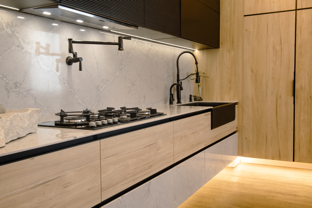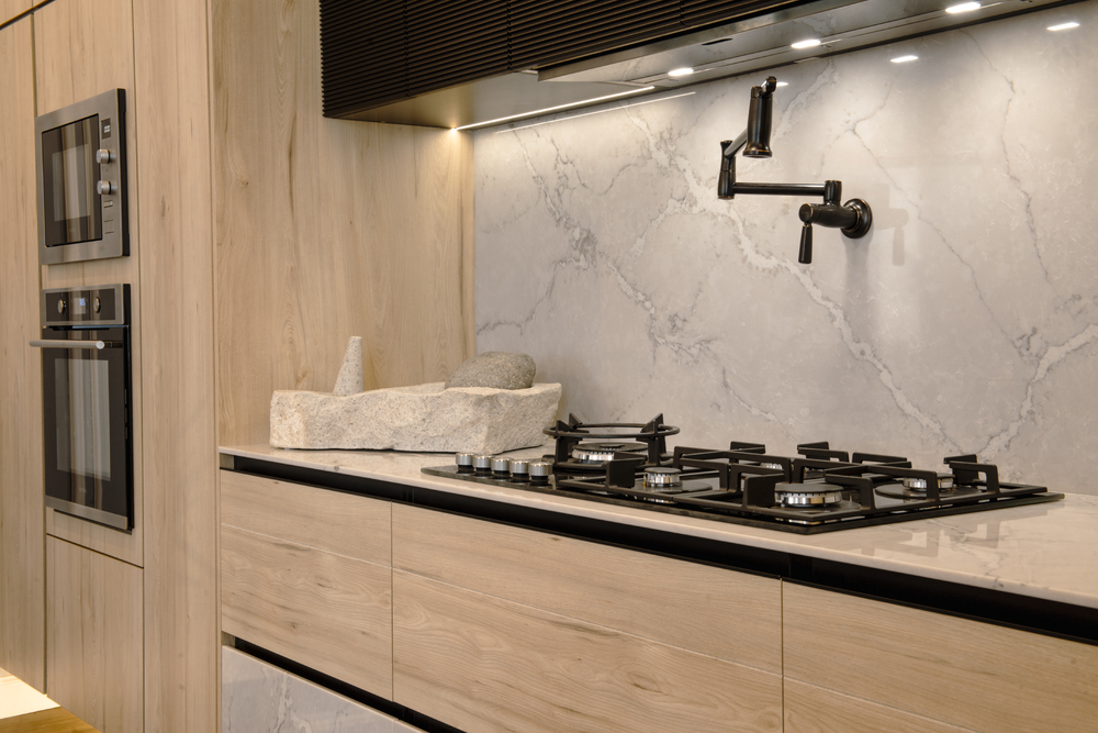 The choice of these boards allowed for a uniform aesthetic and the delivery of durable, resistant, and easy-to-maintain surfaces. They also boast high-performance technical attributes: they are stain-resistant, antiviral, antifungal, and antibacterial (with over 99% effectiveness), scratch-resistant, precise cutting, responsibly produced, and a finish that adds both functional and visual value.