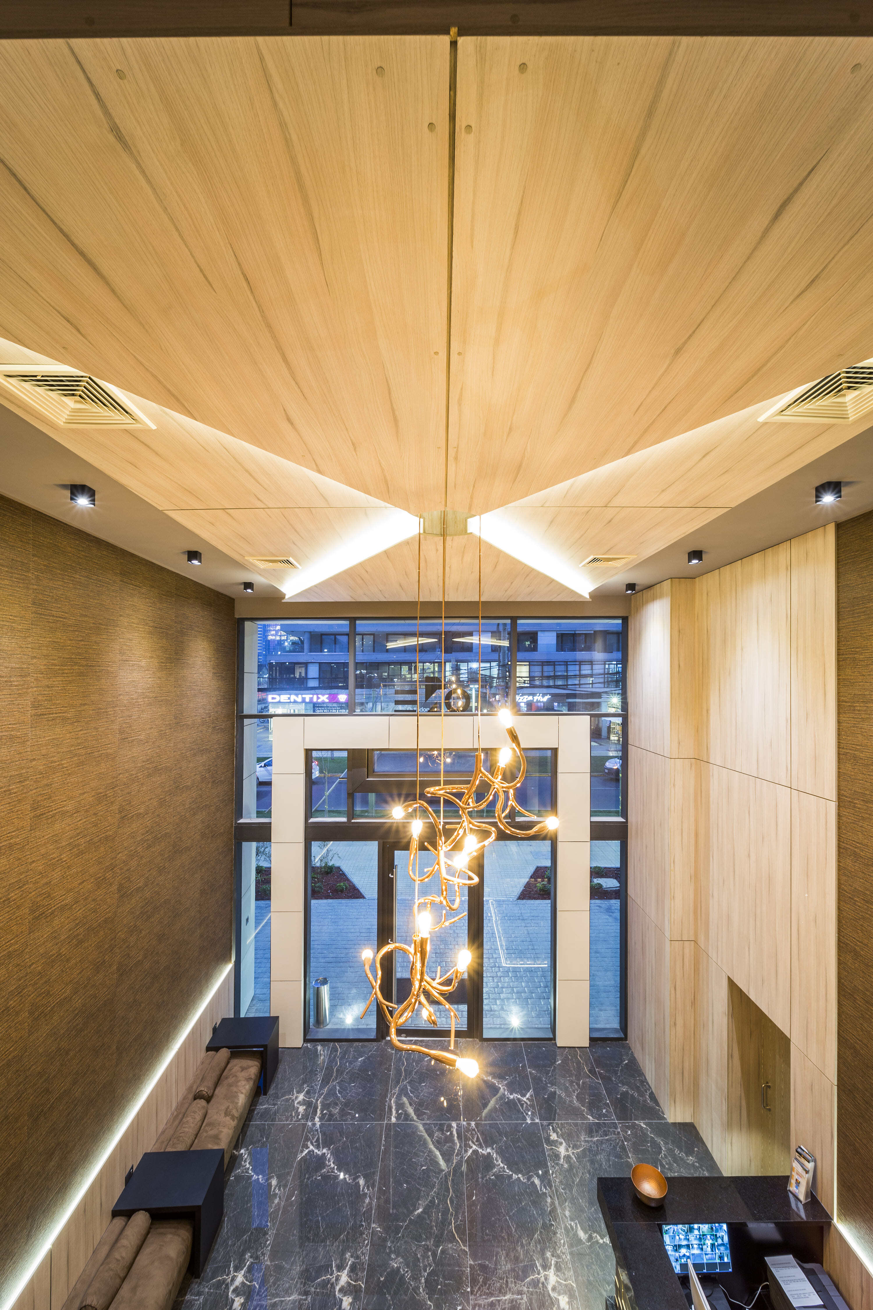La Melamina Nogal Ceniza de Masisa no solo destaca por su diseño elegante, sino también por sus avanzadas propiedades técnicas. Tratada con tecnología de iones de plata, ofrece protección antiviral y antimicrobiana, promoviendo un entorno seguro para los huéspedes. Esta tecnología elimina más del 99% de virus, hongos y bacterias, y su acción protectora se mantiene activa las 24 horas del día. Este material es ideal para proyectos de alto tránsito como One NK Apartments, donde la durabilidad y el fácil mantenimiento son fundamentales. Su superficie cerrada y resistente al desgaste asegura que los espacios se mantengan impecables con el tiempo, mientras que su diseño sigue las últimas tendencias internacionales, aportando funcionalidad y estilo en cada rincón del hotel.