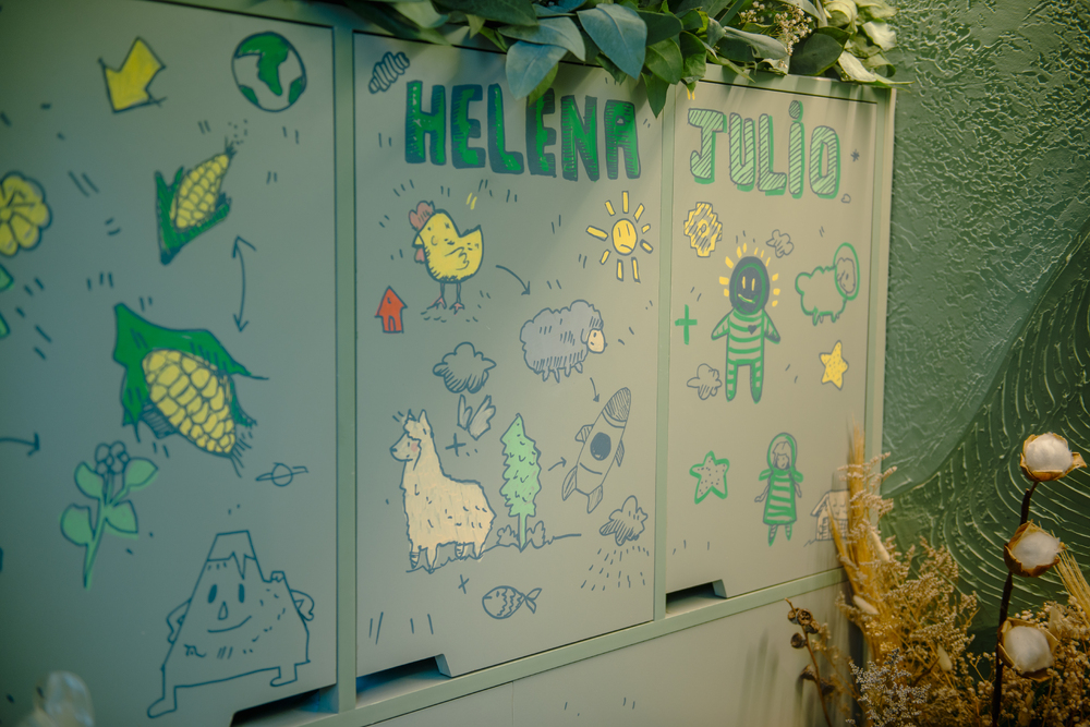 Para dar forma a este relato onírico, se utilizaron los diseños de melamina Verde Glaciar y Pacífico, esenciales para construir un ambiente que conecta con la naturaleza, la memoria y el juego. Verde Glaciar representa la relación con el entorno natural y fue aplicado en zonas dedicadas al aprendizaje y la exploración sensorial. Pacífico, en su tonalidad azul, remite a los apus, montañas sagradas de la cosmovisión andina, integrando profundidad y serenidad. Estos tableros no solo permitieron desarrollar mobiliario funcional, sino también dar forma a piezas orgánicas como cactus y cerros, que aportan movimiento al lugar. Es un entorno que celebra la infancia. La totalidad del espacio invita a escalar, trepar y jugar, estimulando la interacción desde el diseño y la experiencia.