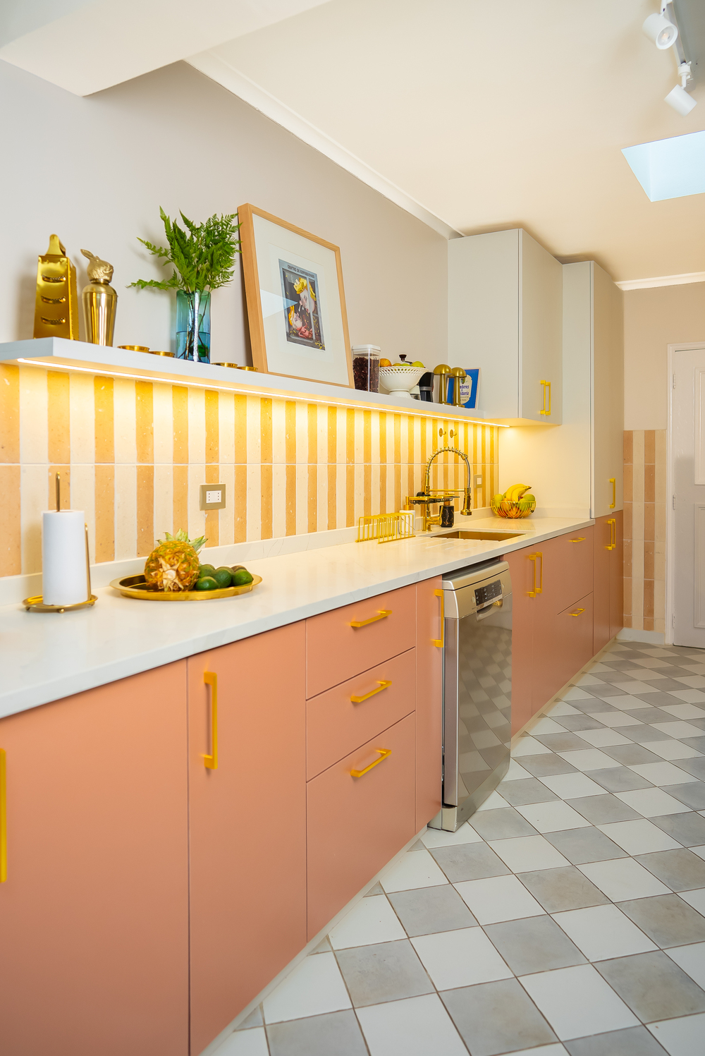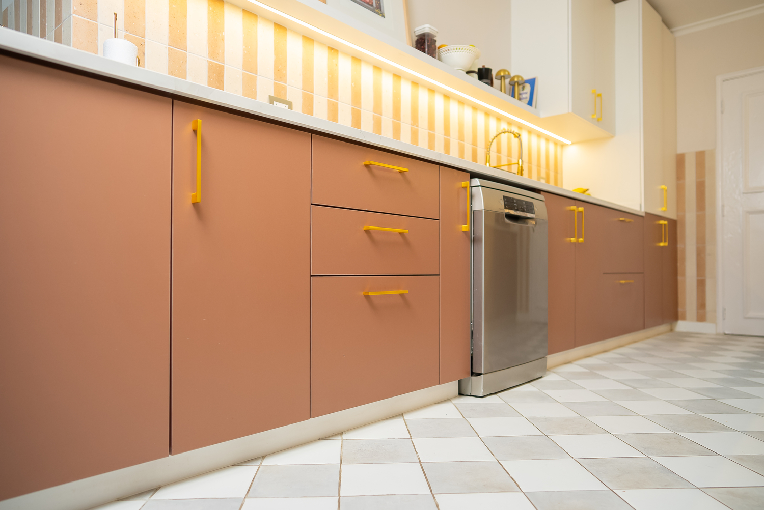 Terracotta Charyn Basic, part of Masisa’s new color collection, is the focal point of the project. Its rich earth tone adds depth, warmth, and a strong sense of character to the cabinetry. Featuring a subtle sheen that shifts with the light, this finish transforms the perception of the space throughout the day, creating a sophisticated yet cozy atmosphere. Inspired by Mediterranean architecture, the kitchen design pairs this color with gold accents, light-toned materials, and warm lighting, enhancing its natural nuances and expressing the essence of Masisa’s latest design direction.