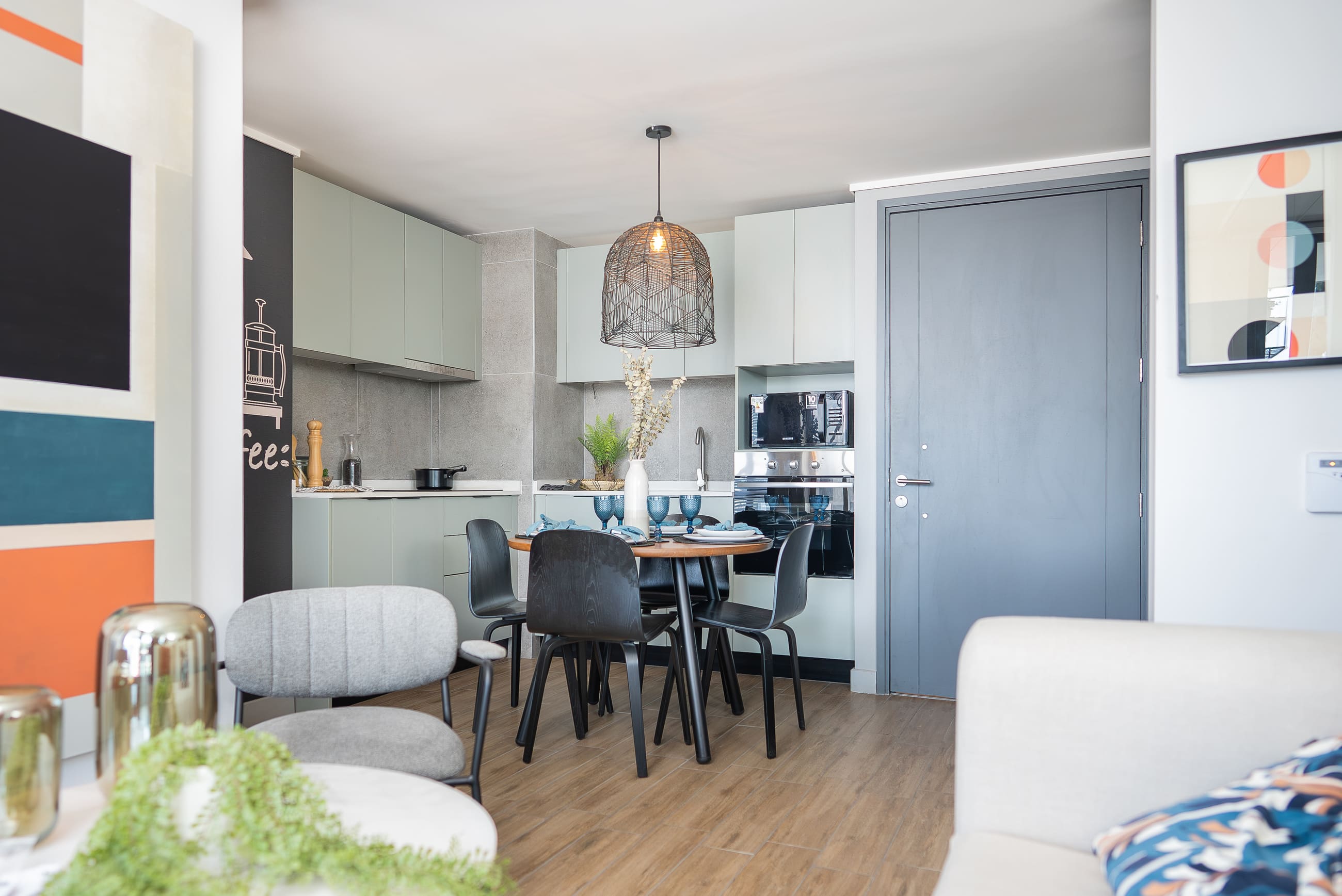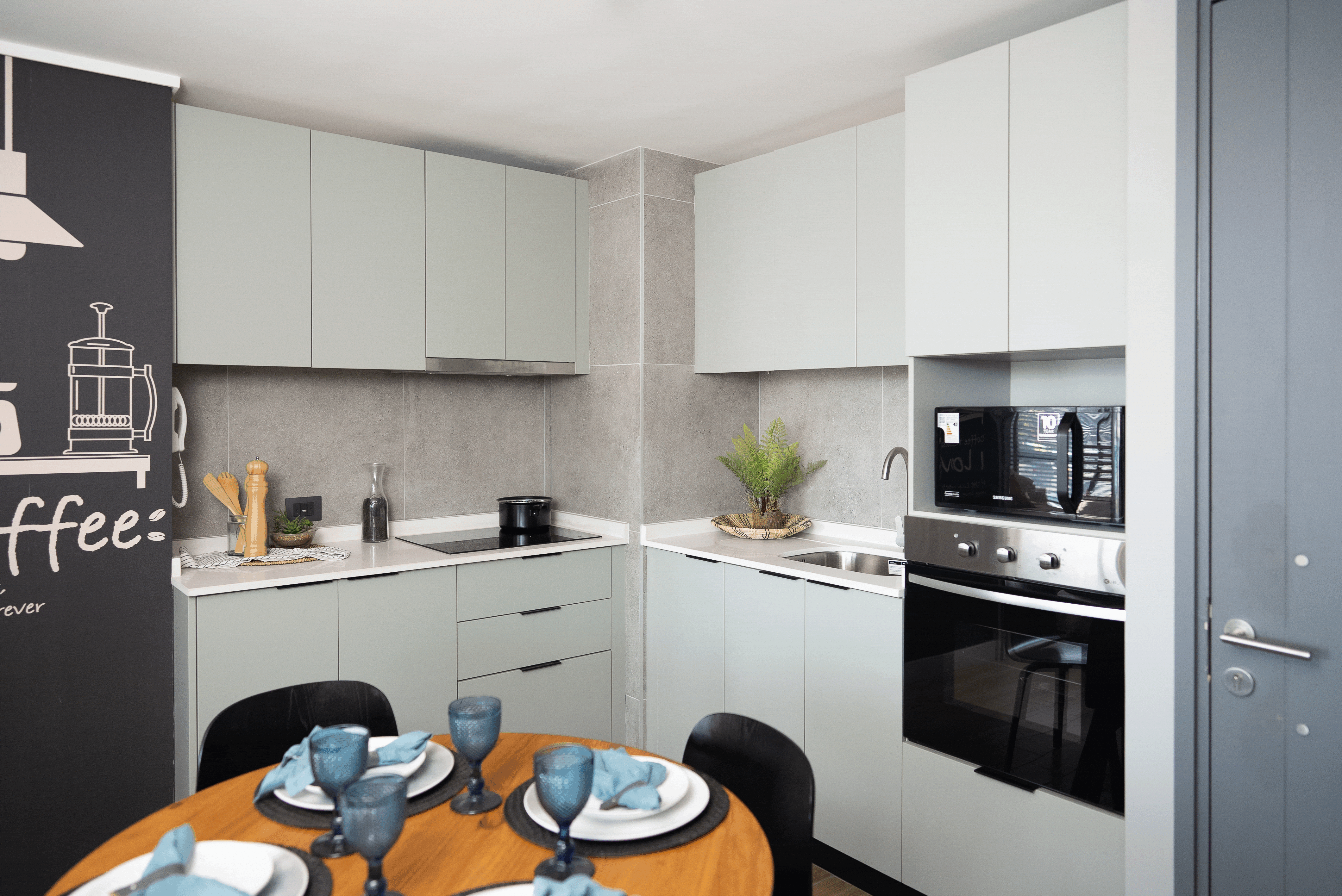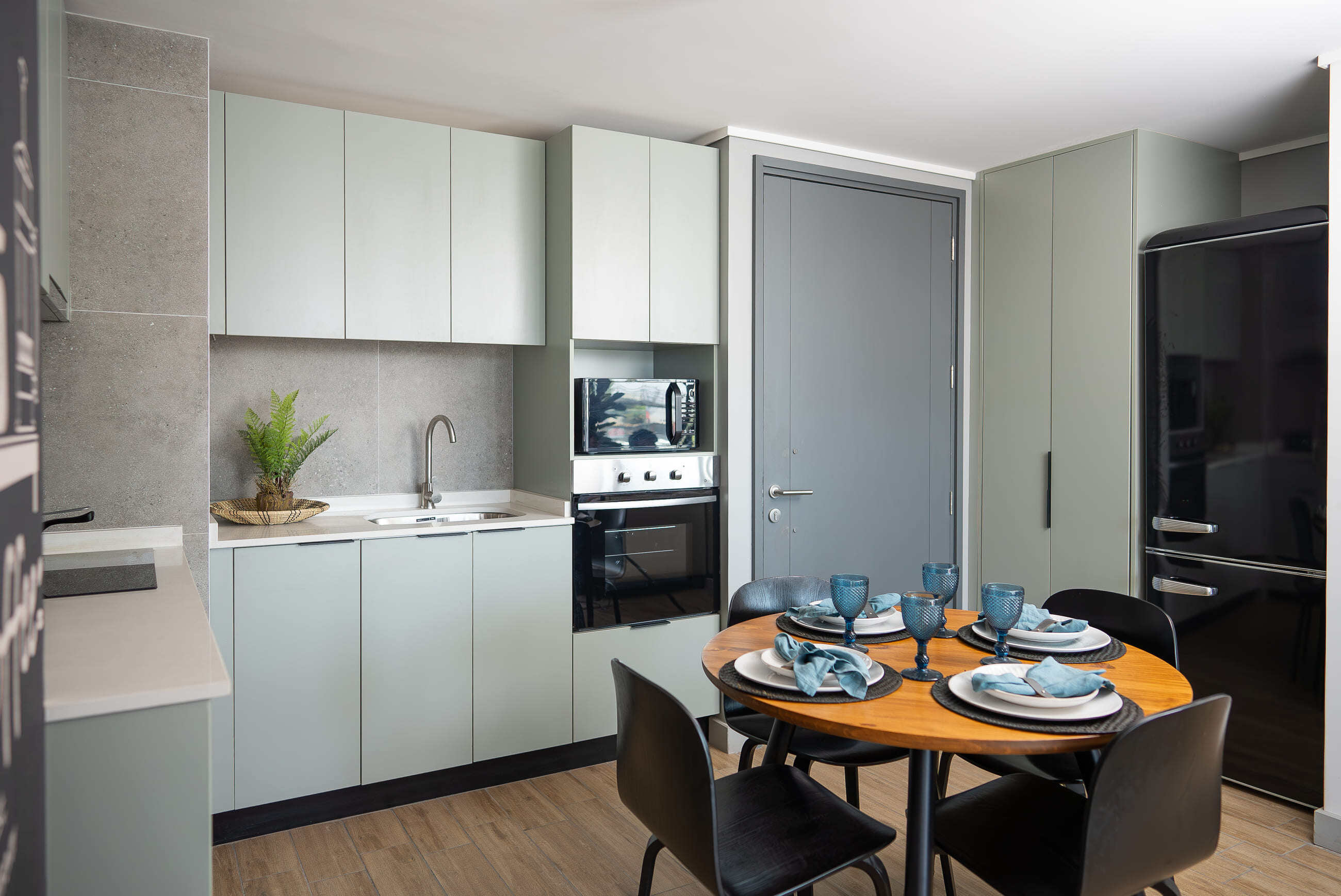 El Proyecto Las Dalias, desarrollado por la Inmobiliaria Fai, combina funcionalidad y diseño a través de materiales que aportan frescura y calidez. Ubicado en la comuna de Ñuñoa, Santiago de Chile, este espacio ha sido diseñado para maximizar confort y estética. Para el mobiliario de cocina, se utilizó Melamina Verde Glaciar, un tono que amplía visualmente el ambiente y aporta un estilo contemporáneo inspirado en la naturaleza.
