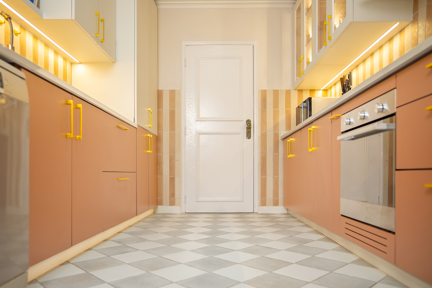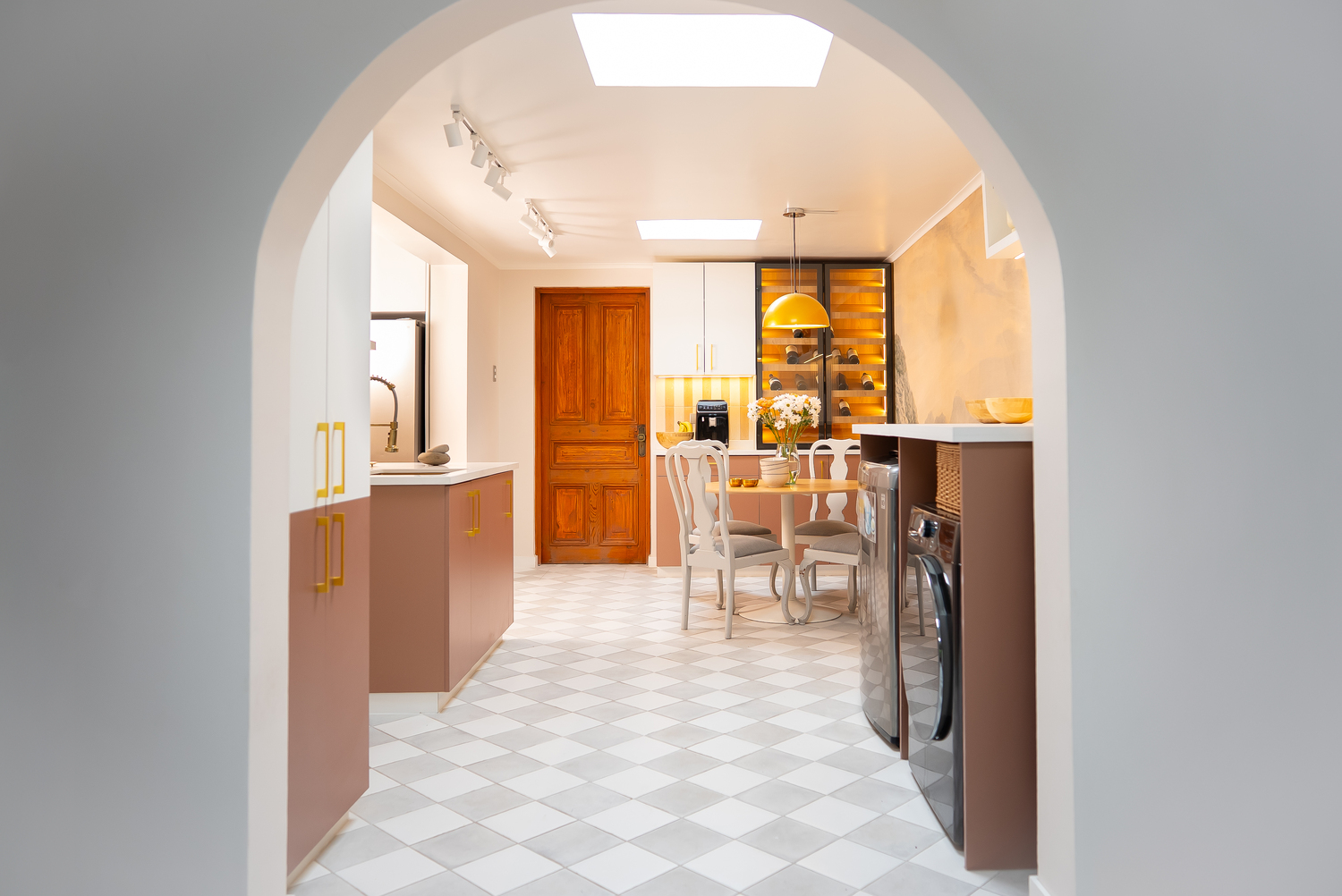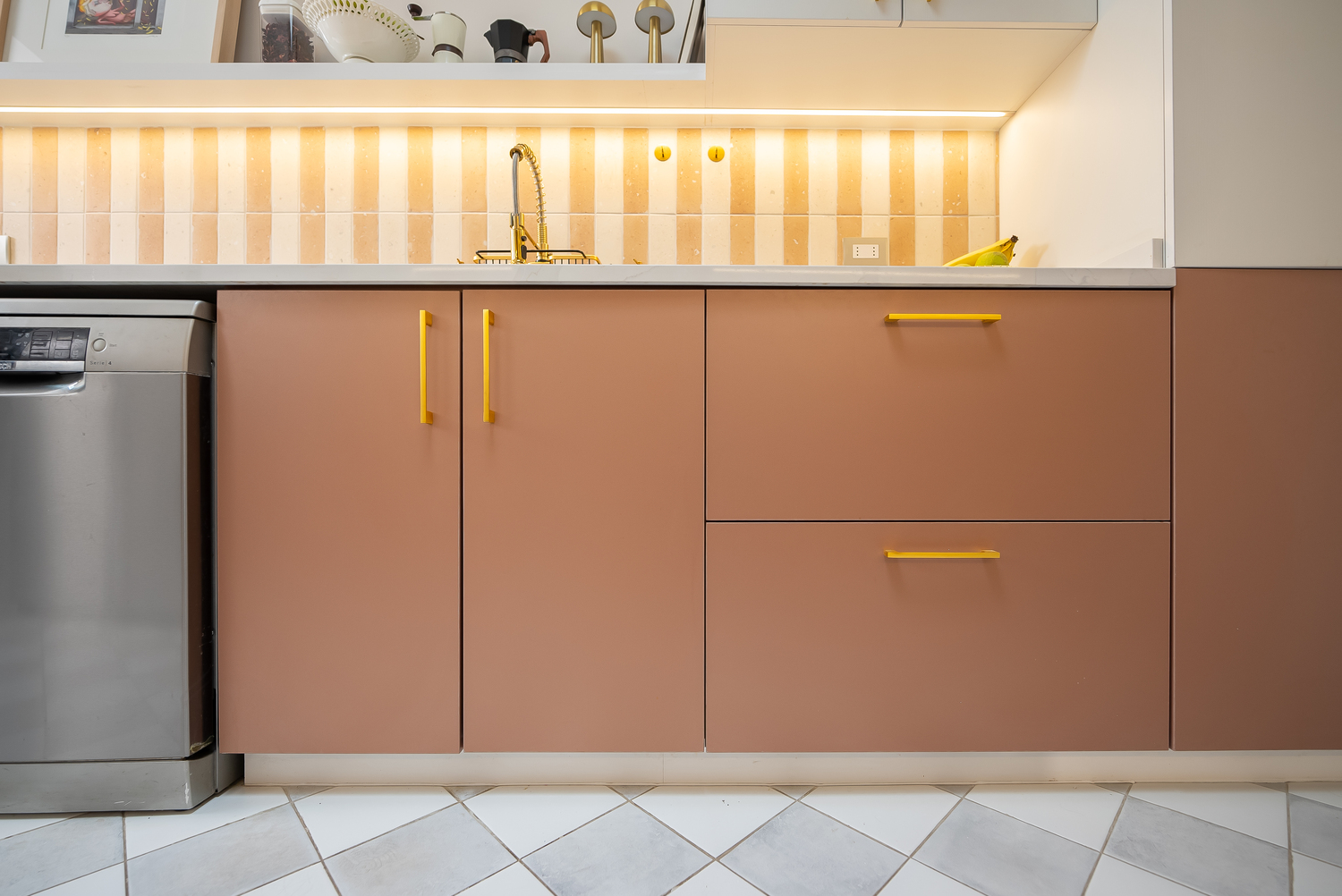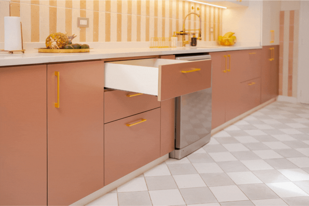 La Melamina Terracota Charyn Basic, parte de la nueva colección de colores Masisa, es el protagonista de este proyecto. Su tono tierra aporta profundidad, calidez y un carácter único al mobiliario. Este acabado, con un brillo sutil que cambia según la luz, transforma la percepción del espacio a lo largo del día, generando una atmósfera acogedora y sofisticada. El diseño de esta cocina, inspirado en la arquitectura mediterránea, armoniza el color con detalles dorados, materiales de tonos claros y una iluminación cálida que potencia sus matices naturales y refleja la esencia del nuevo diseño Masisa.