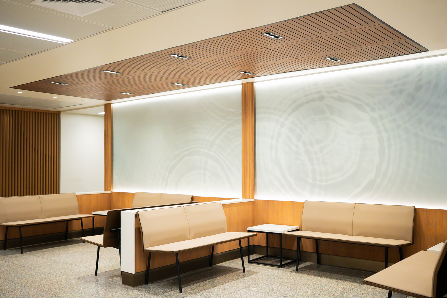 Además de su aporte estético, estos cielos cumplen una función clave: reducir el ruido ambiente y mejorar el confort acústico en zonas donde hay constante movimiento de personas. Esto permite que las salas de espera se sientan más tranquilas y acogedoras, ayudando a mejorar la experiencia de pacientes y acompañantes.