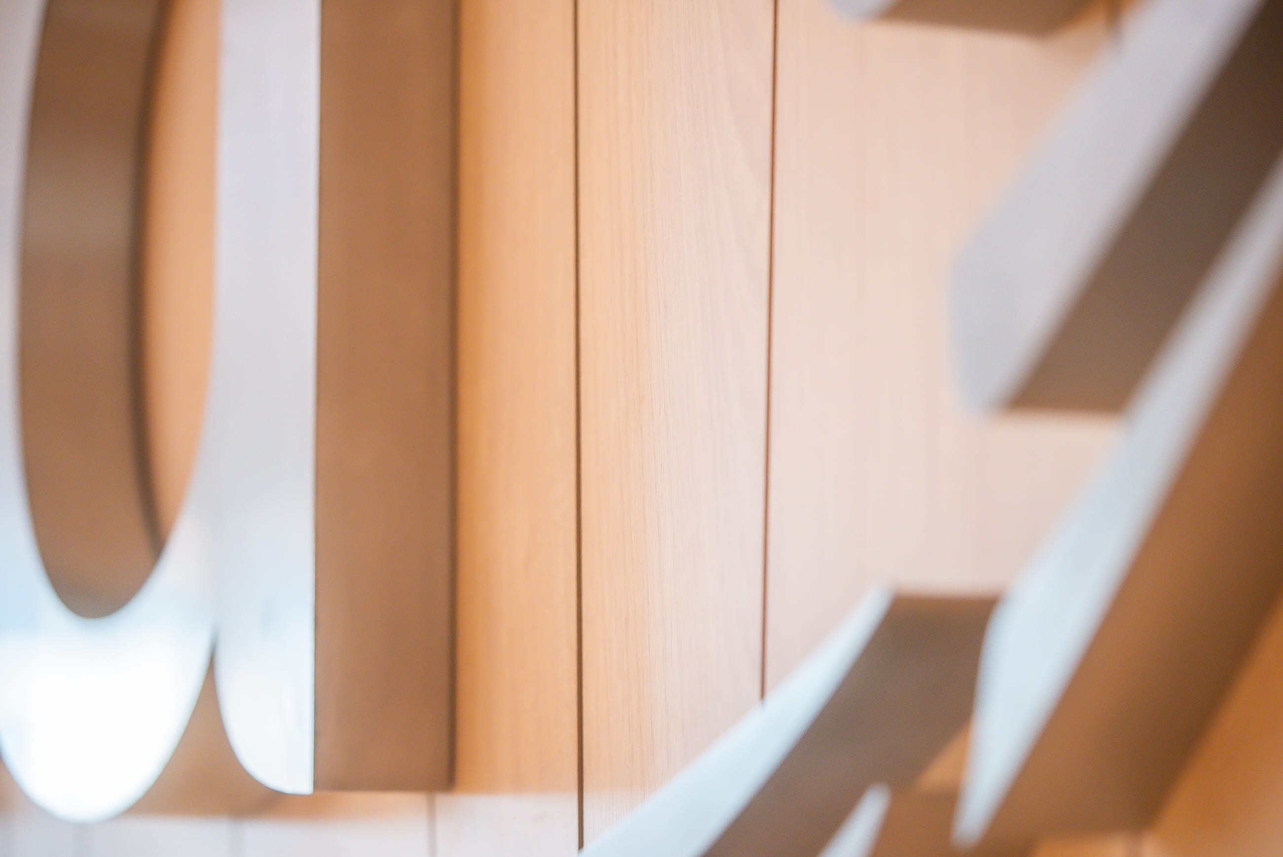 En el interior de las oficinas, se utilizaron Paneles Diagonales, también en acabado Carvalo, generando un contraste con los colores y materiales del entorno. Este revestimiento no solo aporta textura y profundidad, sino que también fortalece la identidad de marca, contribuyendo a una atmósfera de trabajo más confortable y armoniosa.