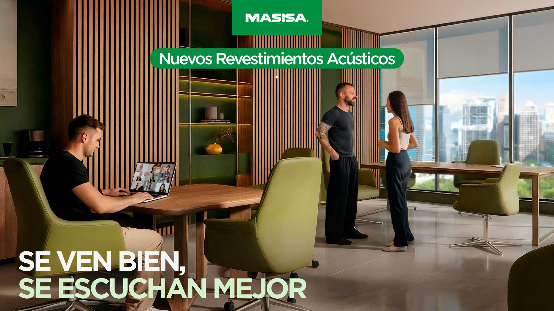 Los Nuevos Revestimientos Acústicos reúnen todo lo que tu espacio necesita en una sola solución: fácil instalación, listos para usar —sin necesidad de pintar, barnizar ni pulir— y con excelentes propiedades acústicas para interiores, alcanzando hasta un 50% de reducción de ruido.
